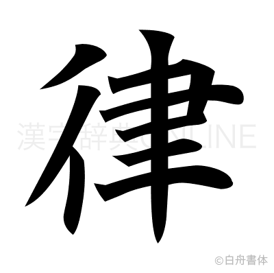 律は、のり / 決まり / のっとる / 手本にする / 音階などの意味を持つ漢字です。
