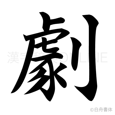 劇は、げき / 芝居 / 激しい / はなはだしいなどの意味を持つ漢字です。