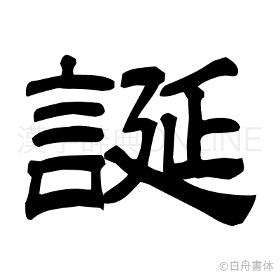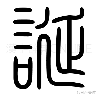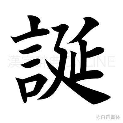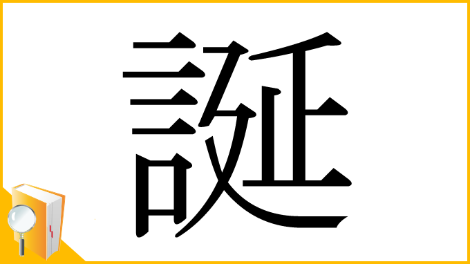 誕は、うまれる / 育てる / うそ / いつわるなどの意味を持つ漢字です。