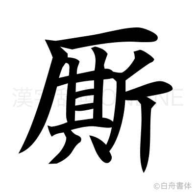 厮は、部首は厂部に属し、画数は14画、漢字検定の級は1級の漢字です。