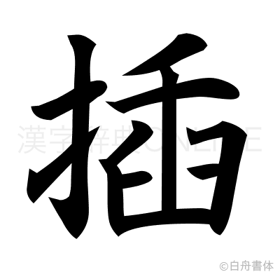 插は、部首は手部に属し、画数は12画、漢字検定の級は1級 / 準1級の漢字です。