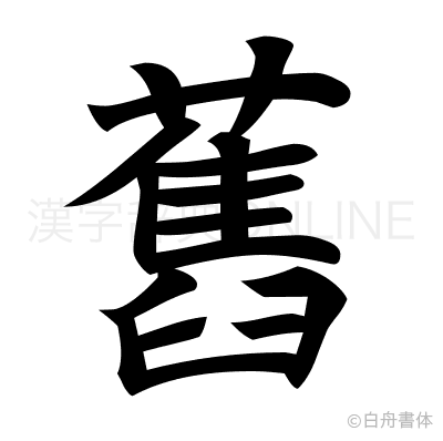 舊は、部首は臼部に属し、画数は17画、漢字検定の級は1級 / 準1級の漢字です。