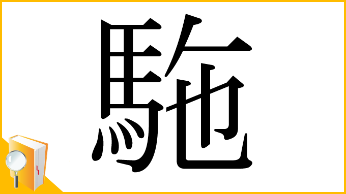 駞は、部首は馬部に属し、画数は15画、漢字検定は配当外の漢字です。