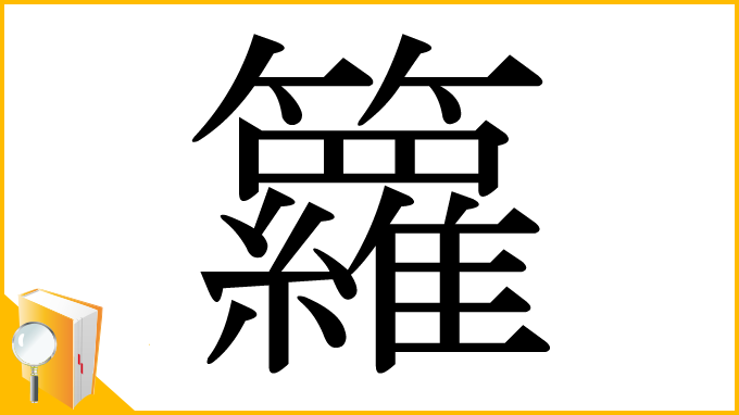 籮は、部首は竹部に属し、画数は25画、漢字検定は配当外の漢字です。