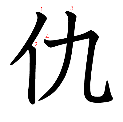 仇は、あだ / かたきなどの意味を持つ漢字です。