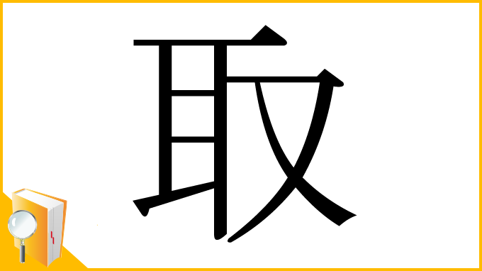 取は、取る / 奪いとる / めとるなどの意味を持つ漢字です。