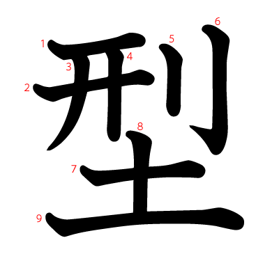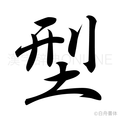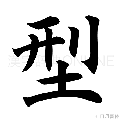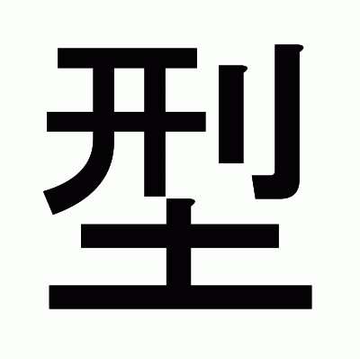 型は、かた / いがた / 基本的な形 / 手本 / 見本 / 様式などの意味を持つ漢字です。