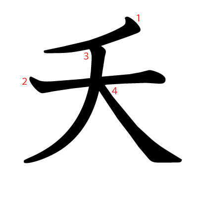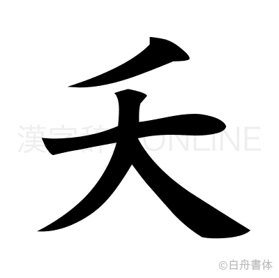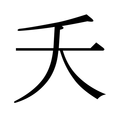 夭は、部首は大部に属し、画数は4画、漢字検定の級は1級の漢字です。