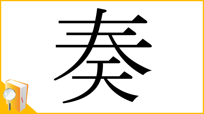 奏は、すすめる / 献上する / 奏でる / 演奏するなどの意味を持つ漢字です。