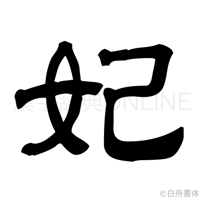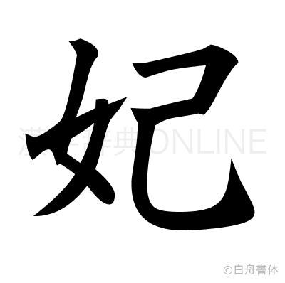 妃は、きさき / 天子の妻 / 皇太子の妻などの意味を持つ漢字です。