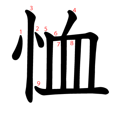 恤は、部首は心部に属し、画数は9画、漢字検定の級は1級の漢字です。