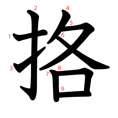 挌は、部首は手部に属し、画数は9画、漢字検定の級は1級の漢字です。