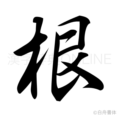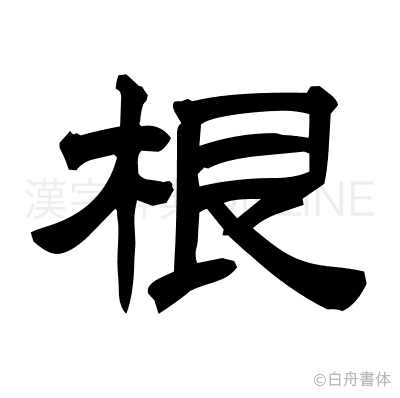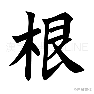 根は、草や木の根 / みなもとなどの意味を持つ漢字です。
