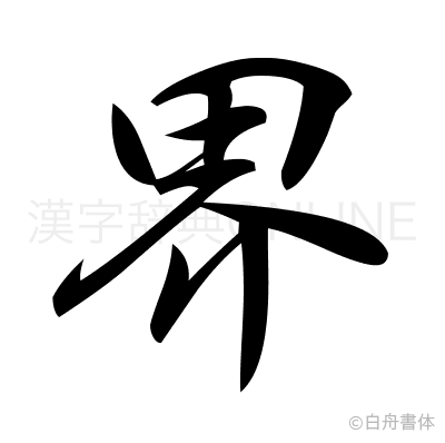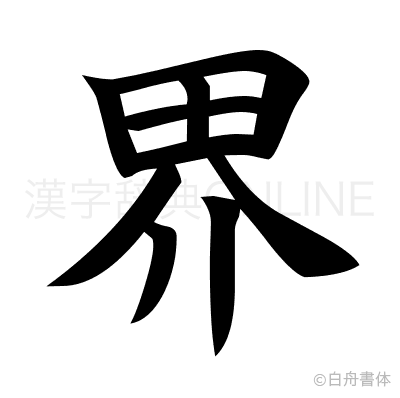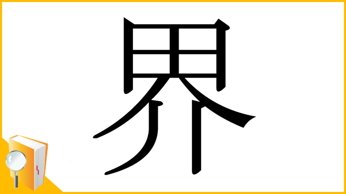 界は、さかい / 区切り / 限り / 区域などの意味を持つ漢字です。