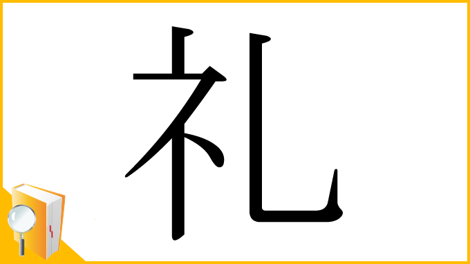 礼は、うやまう / もてなす / 敬意を表す / 敬意をはらうなどの意味を持つ漢字です。
