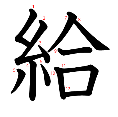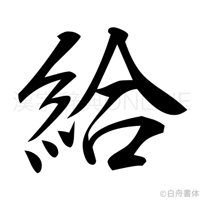 給は、足す / 満たす / 足る / 備わる / たまう / 手当などの意味を持つ漢字です。