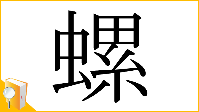 螺は、らせん状の巻き貝 / ほら貝などの意味を持つ漢字です。