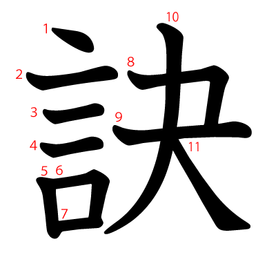 訣は、人と離れ離れになる / 死別するなどの意味を持つ漢字です。