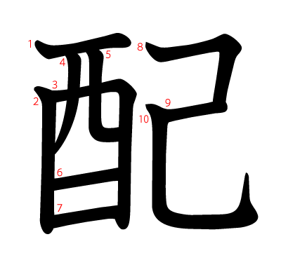配は、配る / つれあい / 並べるなどの意味を持つ漢字です。