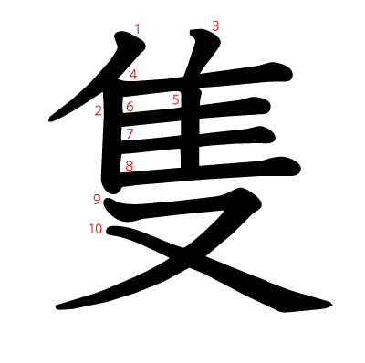 部首は隹部に属し、画数は10画、漢字検定の級は3級です。