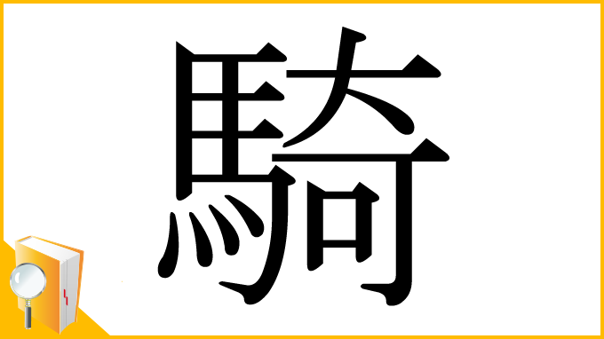 騎は、のる / 馬にのる / 馬にまたがる / 乗用の馬 / 馬に乗った兵などの意味を持つ漢字です。