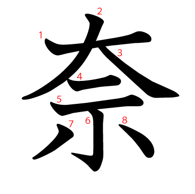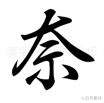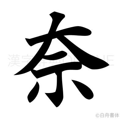 奈は、からなし / りんごの木などの意味を持ち、「いかん」「なんぞ」など読み、疑問や反語の意を表す漢字です。