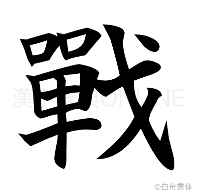 戰は、戦う / 戦い / おののくなどの意味を持つ漢字です。