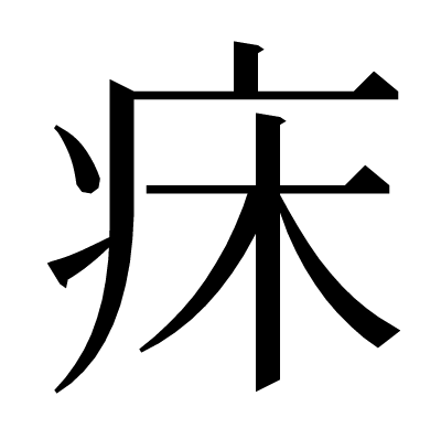 𤴷は、部首は疒部に属し、画数は9画、漢字検定は配当外の漢字です。