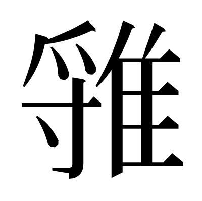 𨿐は、部首は隹部に属し、画数は15画、漢字検定は配当外の漢字です。